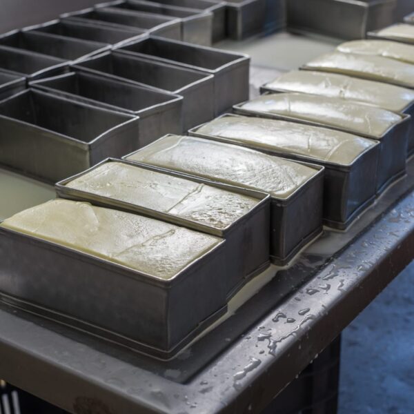 Em seguida, a mussarela é mergulhada em salmoura, garantindo o equilíbrio perfeito de sal e sabor.