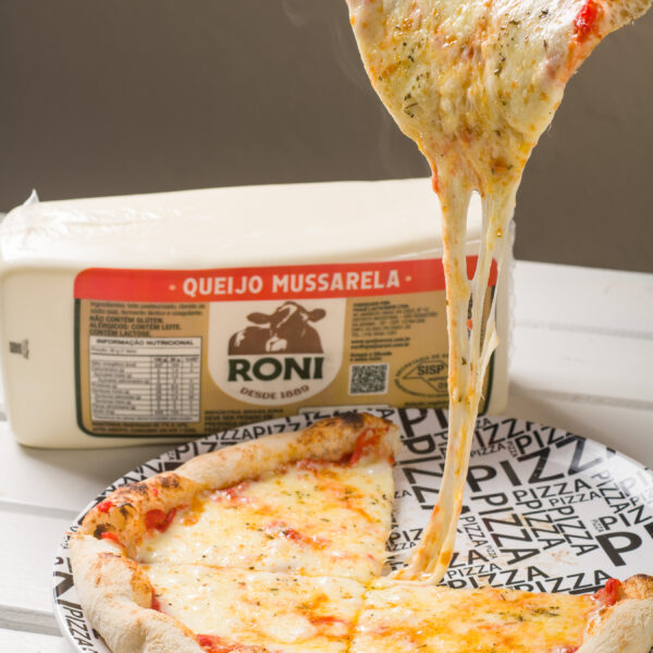 A Mussarela Tradicional RONI é mais amarelada e um pouco mais seca e mais salgada que a convencional.