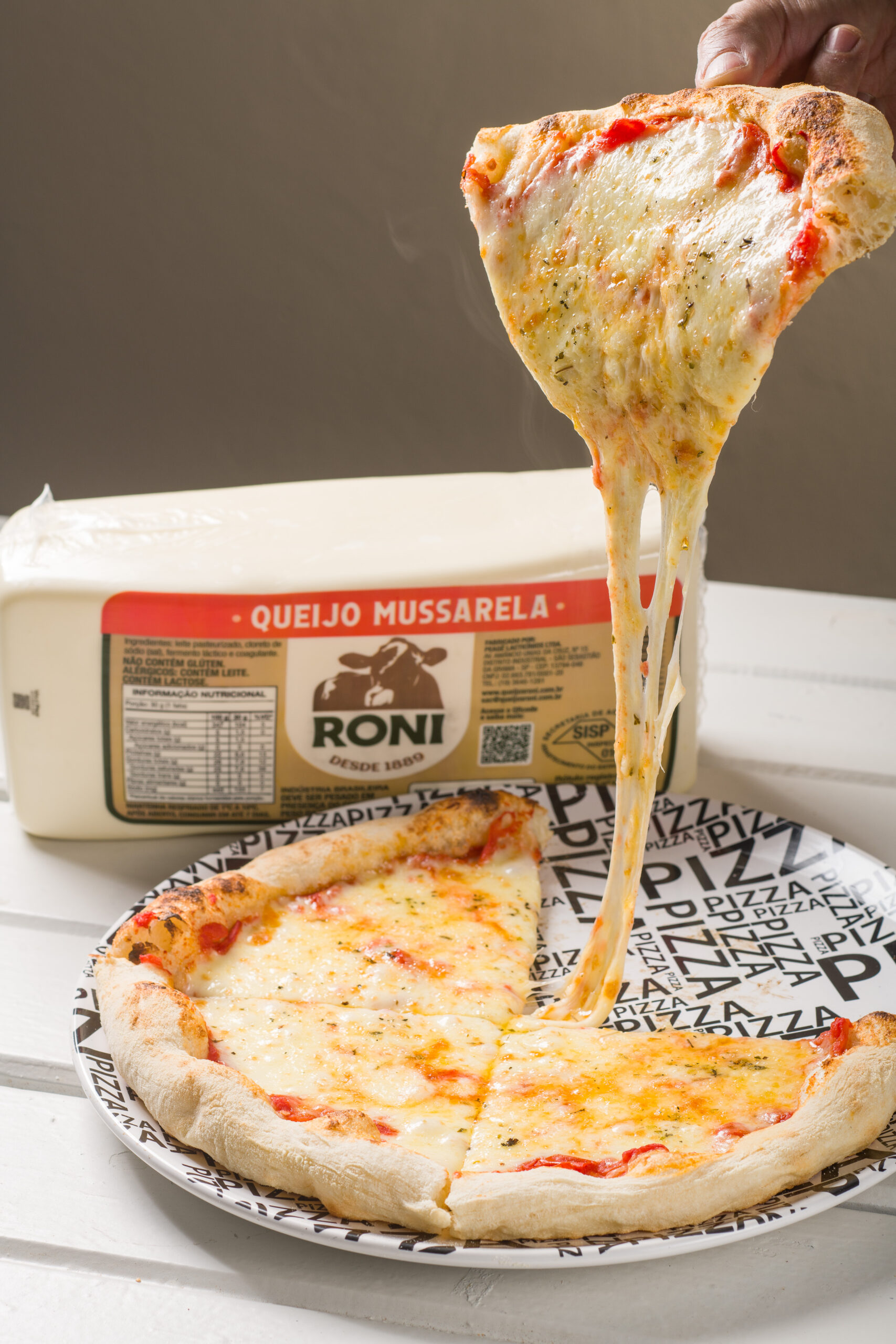 A Mussarela Tradicional RONI é mais amarelada e um pouco mais seca e mais salgada que a convencional.